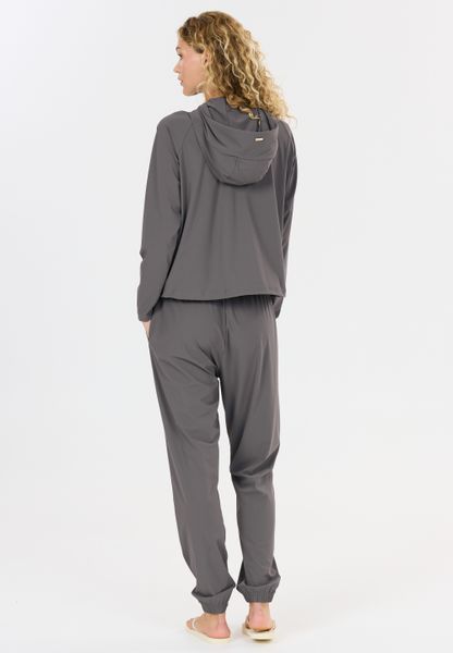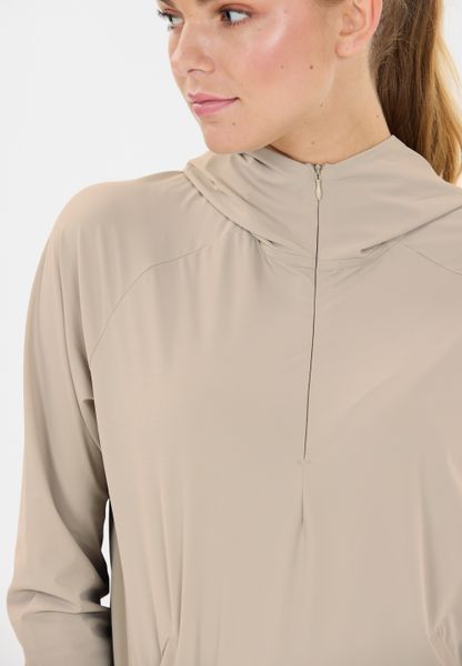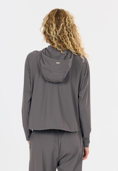 Komfortable Damen-Kapuzenjacke mit Stretch, verstellbarer Kapuze und Saum, perfekt für aktive und entspannte Tage.