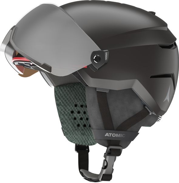"The Savor Visor JR from Atomic is the ideal ski helmet for young skiers, combining comfort, protection and functionality in a well thought-out design. Thanks to its light weight and adjustable visor setting, this helmet offers the option of wearing corrective goggles comfortably underneath. The advanced Flash lens technology with its high-quality mirror coating ensures optimum visibility and reduces glare, which is particularly beneficial in changing light conditions on the slopes"