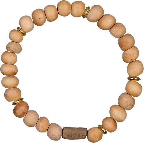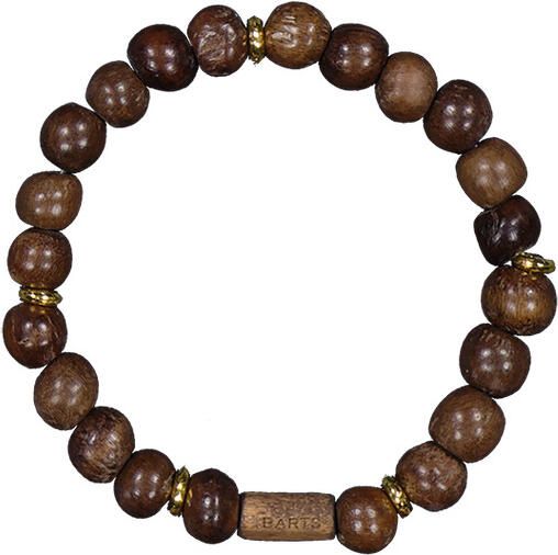"Elegant unisex wooden bead bracelet with BARTS logo, adapts to any wrist and adds natural charm to any outfit."