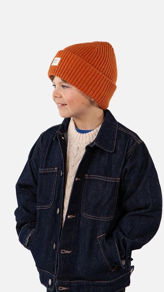 "Pleasantly soft beanie for boys made from recycled polyester, perfect for a fashionable and environmentally conscious look."
