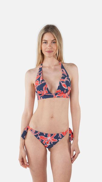 "Sporty bikini top with a floral print, adjustable straps and sustainable material for optimum support."