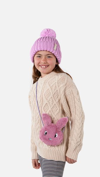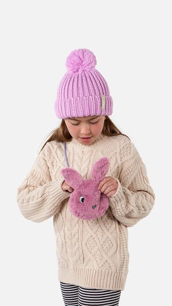 "Cute rabbit children's bag made of soft faux fur with a zipper, ideal for little adventurers."