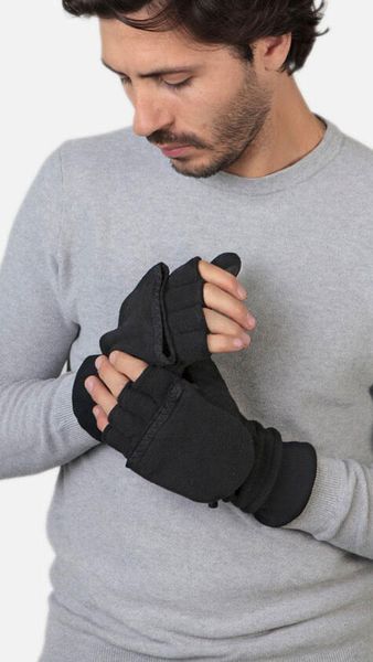 - Fingerless unisex fleece mittens 100% recycled polyester Additional grip in the palm Ability to cover the fingers