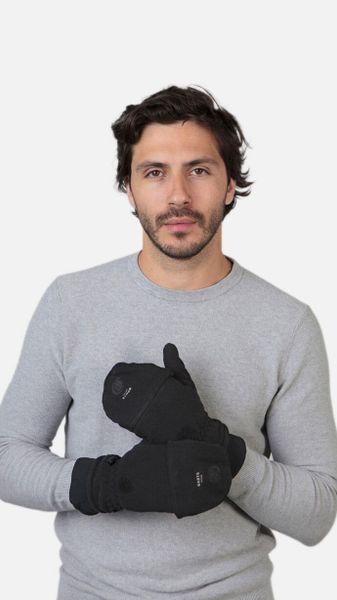 "The Convertible Mitts are characterized by their special design, which makes it possible to cover the fingers if required. This makes them ideal for situations where both dexterity and warmth are required. An additional grip in the palm ensures that you always have a secure hold, whether you are hiking, cycling or simply taking a walk on cold days"