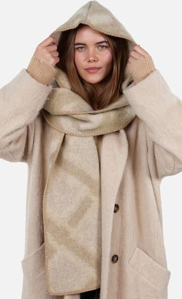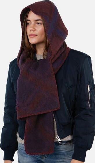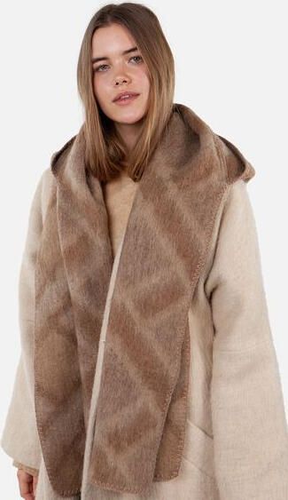 - "Ladies hooded scarf 50% recycled polyester checkerboard pattern This product gradually takes on a fluffy appearance, please note that this may remain on your clothing Mau00dfe": 180 x 30 cm (length x width)