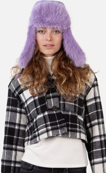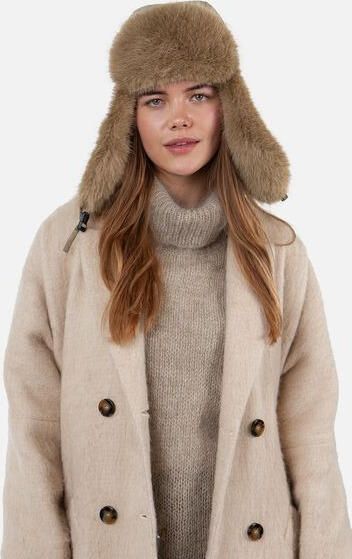 - Bomber hat for women 100% recycled polyester Faux fur details Filling material: "100% polyester clip fastener"