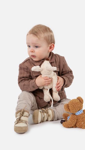 - "Ankle boots for babies 100% polyester faux lambskin Lining made of 100% faux teddy fabric Available in size S": "6 - 12 months The laces can be adjusted for a perfect fit"