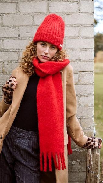 - "Soft woven scarf 36% wool Finished with a brushing technique to make the scarf super soft Mau00u00dfe": "200 x 19 cm (length x width)"