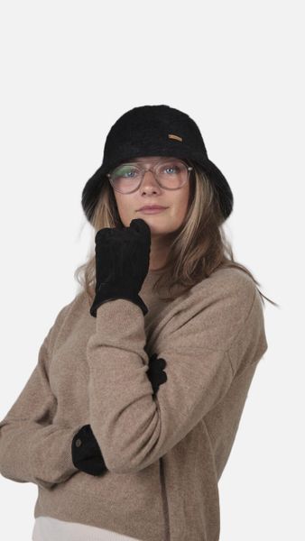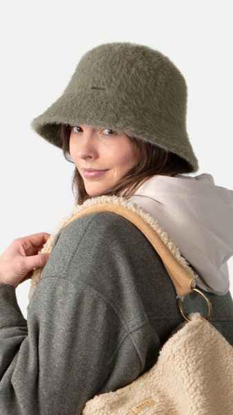 "The Lavatera hat from Barts is the perfect accessory for style-conscious women who value both comfort and fashionable design. This soft fisherman's hat stands out with its unique faux fur look that adds a touch of luxurious elegance to any outfit. The 6 cm brim length not only offers a charming look, but also some protection from the sun and wind."