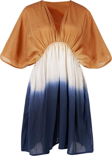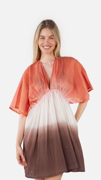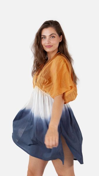 "Elegant summer dress with unique dip-dye technique, ideal for swimming & water sports, fits size 36 to 44."