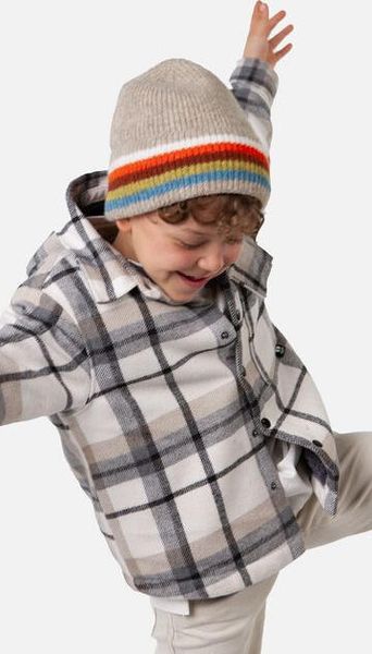- "Knitted hat for boys 55% recycled polyester Fleece lining on headband for added comfort and warmth Soft hand-feel cuff height": 7 cm