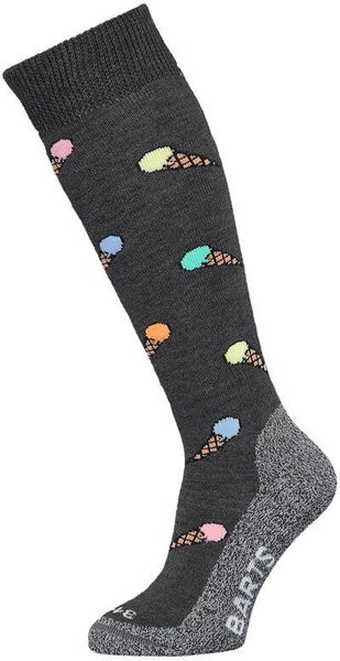 "The Ice Cream Kids ski sock from Barts is the ideal choice for young skiers who value comfort and protection. These ski socks are specially designed for children and are made from 26% high-quality merino wool. This natural fiber not only ensures excellent heat regulation, but also effective moisture absorption, which ensures dry and warm feet. The soft texture of the merino wool feels pleasant on the skin and the flat toe seam prevents unpleasant pressure points"