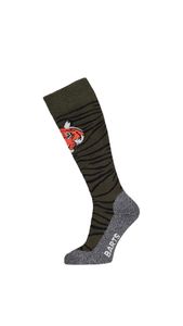 "The Tiger Kids ski sock from Barts is the ideal choice for little skiers who value comfort and functionality. Made from 21% merino wool, these ski socks offer excellent heat regulation and moisture absorption, ensuring a comfortable feel on the slopes. Merino wool is known for its natural softness and ensures that the socks feel comfortable against the skin, while the flat toe seam minimizes friction"