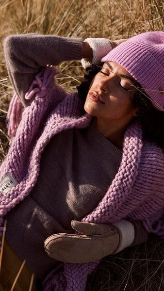 - "Large triangular scarf 50% recycled polyester Made from soft, untwisted yarn Hand-knitted, entirely by hand! Mau00dfe": "55 x 160 cm (length x width) This product will gradually acquire a fluffy appearance, please note that it may release fibers on your clothing"