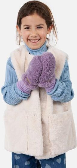 - "Warm mittens for girls 80% acrylic faux fur material 100% polyester fleece lining Size information": "Gr. 3": "4-6 years, size 4": "6-8 years Perfect to combine with Ugasu Hat, Ugasu Bomber, Doozy Earflap, Doozy Headband, Lucernia Bomber Kids"