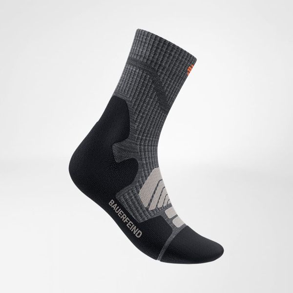 "Experience ultimate comfort and performance with Bauerfeind's Outdoor Merino Mid Cut socks, specially designed for outdoor activities such as running and hiking. These socks combine the natural climate regulation of merino wool with innovative technologies to keep you safe and comfortable on any terrain. The u201eInfinity Zoneu201c supports the ankle area and provides stabilityu201ewhile the merino wool keeps your feet dry and freshu201."