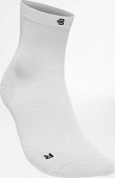 "Experience unparalleled comfort and stability when running with the ultra-light Run Ultralight Mid Cut Socks from Bauerfeind. These innovative running socks have been specially developed for runners who value stability and breathability. The ultra-thin construction enables a barely perceptible feel so that you can concentrate fully on your running adventures. The integrated compression zones provide targeted support for the ankle and foot arch, effectively reducing the load on these areas"