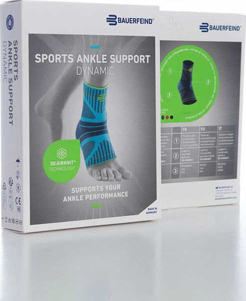 "The Sports Ankle Support Dynamic from Bauerfeind is the ideal companion for all sports enthusiasts who want to improve their performance while minimizing the risk of injury. This high-quality ankle support offers excellent stability and supports the ankle during intensive sports activities such as running, fitness and outdoor activities. Thanks to its special knitted zones, the support provides light compression, which promotes depth perception and triggers positive sensorimotor feedback. This leads to improved blood circulation and a more efficient metabolism, which relieves the ligamentous apparatus and optimizes joint coordination."