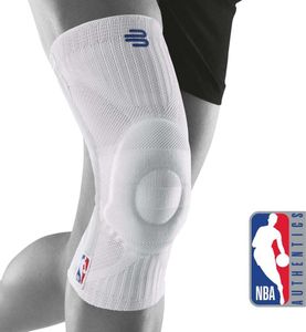 "The Sports Knee Support NBA from Bauerfeind is the perfect support for active athletes who rely on maximum performance and stability when running, jumping and dribbling. This knee support combines innovative technologies such as the Omega Pad and 3D Airknit Technology to provide optimum knee protection and maximum comfort at the same time. The viscoelastic pad of the Omega Pad surrounds the kneecap and absorbs shocks, while the massage nubs provide targeted pain relief"
