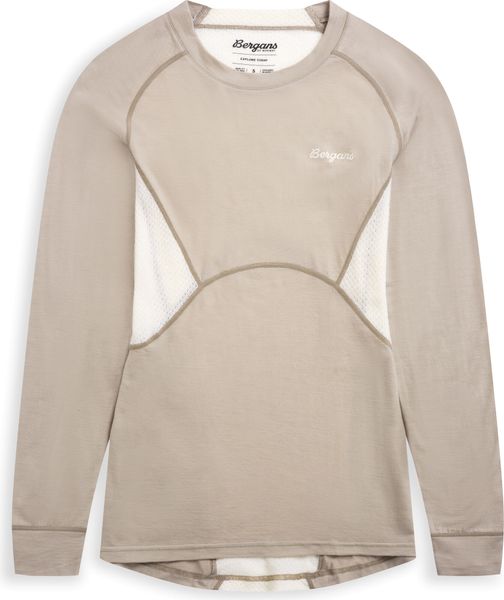 """Experience ""ultimate ""comfort ""and ""functionality ""with ""the ""Inner:""pure ""Merino ""Long ""Sleeve ""Women ""from ""Bergans. ""This ""lightweight, ""comfortable ""and ""functional ""baselayer ""is ""specially ""designed ""for ""women ""who ""enjoy ""hiking ""or ""light ""training. ""Made ""from ""100% ""RWS-certified ""merino ""wool, ""it ""offers ""the ""perfect ""combination ""of ""warmth ""and ""ventilation ""thanks ""to ""an ""innovative ""wool-mesh ""fabric ""in ""strategically ""placed ""areas. ""The ""merino ""wool ""with ""a ""fineness ""of ""18.5 ""microns ""ensures ""a ""soft ""feel ""and ""optimum ""temperature ""regulation, ""while ""the ""fabric ""with ""a ""weight ""of ""200 ""gr/mu00b2 ""ensures ""the ""necessary ""lightness"