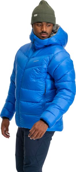 "The design is particularly practical, preventing the front pockets from getting in the way when wearing a rucksack with a lap belt. The jacket is cut longer at the back and its construction with few seams prevents chafing. With its regular fit and small packing volume, the Rabot Allround Down Jacket is suitable for everyday use as well as for extreme adventures"