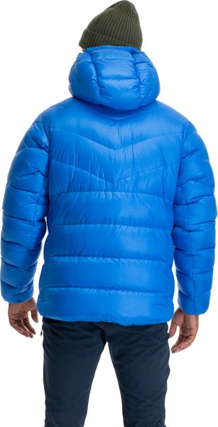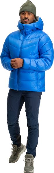 "The jacket is filled with 95/5 RDS-certified duck down, which provides maximum insulation thanks to Box construction technology. At the shoulders, Primaloftu00u00ae Silveru00f insulation made from recycled polyester ensures that the down does not collapse when you carry a backpack. For added comfort, the jacket features a single-use drawcord at the hem, elasticated cuffs and a climbing helmet-compatible hood with adjustment options."