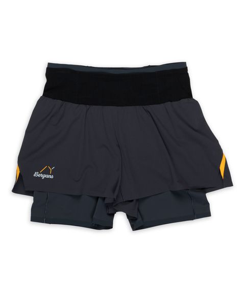 "With Bergans Y LightLine Fast 5" Shorts, the modern material technology ensures optimum running comfort. This 2-layer lightweight is designed for passionate off-road runners who value long-lasting functionality and performance. With its lightweight outer fabric and breathable inner layer, the model offers a high level of comfort without compromising on functionality. The smooth, lightweight outer shorts score points with their outstanding breathability and also provide the best protection. The slightly longer, soft inner shorts are seamless at the center front, flexible and quick-drying, so you can get to your destination unhindered. As all the seams next to the skin are worked as flat merrow seams and the waistband is comfortably wide and does not pinch, fewer chafing points and a generally high level of comfort are guaranteed. The Bergans Y LightLine Fast 5" Shorts are equipped with five cleverly placed pockets. One of these is located on the inner shorts and offers sufficient space for important small items such asu00a0B. Energy bars that are quickly and easily to hand."