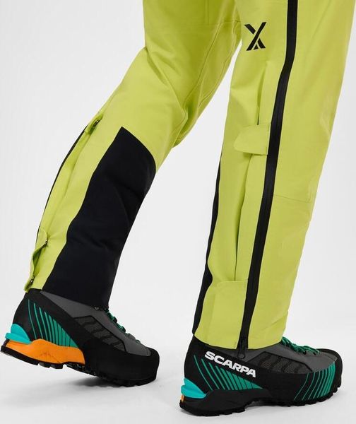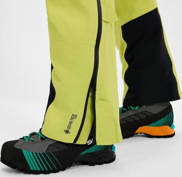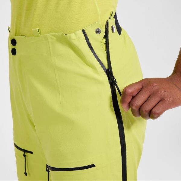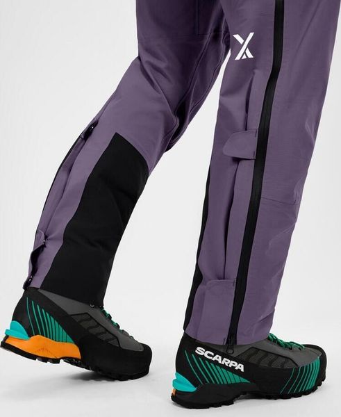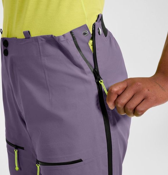 - "Fully separable side zippers make it easier to put on and take off. The fully elasticated rear waistband ensures an individual fit and increased comfort. Two thigh pockets with water-repellent zippers provide easy access to your essentials, even when wearing a harness. Robust reinforcement insert on the inner hem for added durability. Diamond gusset in the crotch for optimum freedom of movement. Fastening points for trouser straps allow for an individual and flexible fit."