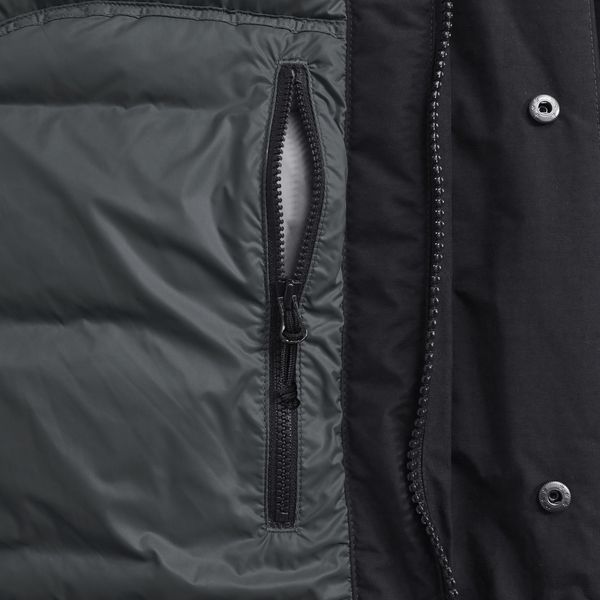 - "Classic parka fit with a straight cut, longer length and modern design elements. The multi-layered hood with reinforced peak offers additional protection and is easy to adjust on the go. Two-way front zipper opens up versatile wearing options. Double-layer storm flap at the front for additional protection from wind and rain. Pre-shaped sleeves ensure optimum freedom of movement and comfort. Inner cuffs with thumb loops increase comfort and keep the sleeves securely in place. Internal zippered pocket for secure storage of small valuables."
