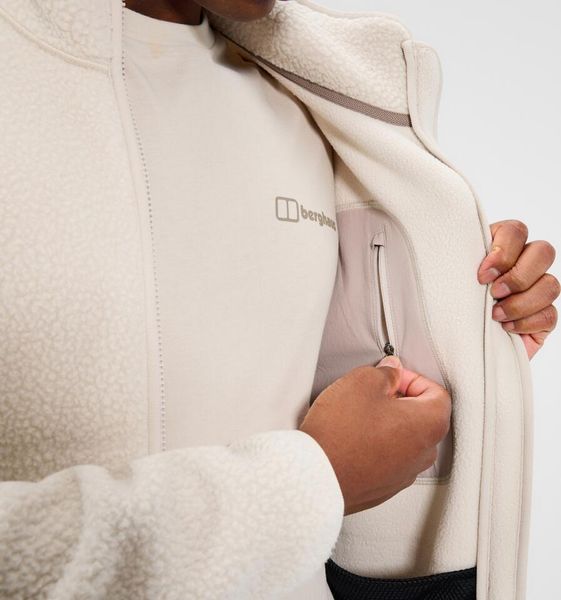 "Thanks to the flat seams and the soft edging at the cuffs and hem, a comfortable feel against the skin is guaranteed. The jacket has two practical zipped pockets that offer enough space to store your most important items safely and within easy reach. Particularly noteworthy is the InterActivefront zip, which makes it possible to combine the jacket with compatible Berghaus shell jackets u2013 ideal for changing weather conditions."