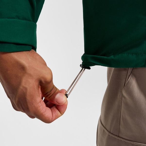 - "Two zippered pockets offer space for important items and warm hands. An inner chest pocket with zipper closure keeps small items safe. Two-point hood adjustment for a close fit to protect against rain from all directions. Hem cord and adjustable Velcro cuffs for the perfect fit."
