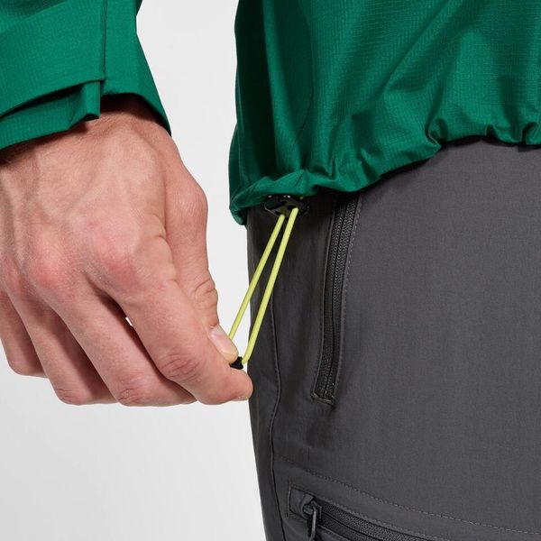 - "Underarm zippers allow you to dissipate heat quickly, especially during intense activity and on warmer days. The raised, zippered handbags are also easy to access with a backpack. Pre-shaped sleeves and underarm area offer great freedom of movement. An internal zippered pocket secures smaller essentials. The double hem adjustment allows for a customized fit. The two-way AquaGuard zipper offers additional versatility and excellent protection in wet weather."