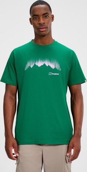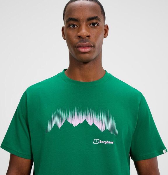 "The T-shirt impresses with its striking graphic print depicting auroras and a mountain silhouette, conveying the adventurous spirit of Berghaus. Fine seam details on the neck, cuffs and hem underline the high-quality design and make the shirt a real eye-catcher. Whether you're hiking in the mountains or taking a relaxed stroll through the city, this T shirt is a must-have for every wardrobe."
