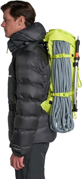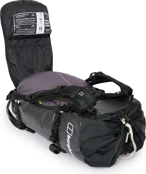 - "100% ocean recycled 210d nylon Seawastex fabric on the shoulder straps and bivvy pocket for durability and water resistance. Revised shape of the backpack for more stability and optimum load distribution. Top opening and a zippered lid at the back provide quick and easy access to your luggage. Reinforced attachment points for skis and ice axe. Various options for customizing the backpack allow you to configure it to your specific needs by removing elements."