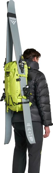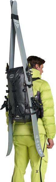 "The updated carrying system of the MTN Guide 32+ AM ensures improved load distribution and increased comfort, even on long tours. The breathable back panel made of Hypercushion-Spacer mesh offers excellent padding and moisture regulation, so you stay dry and comfortable even on strenuous ascents. The redesigned shape of the backpack ensures optimum stability, while the reinforced attachment points for skis and ice axes offer additional functionality."