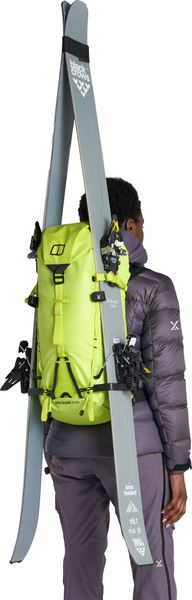 - "100% ocean recycled 210d nylon Seawastex fabric on the shoulder straps and bivvy pocket for durability and water resistance. Revised shape of the backpack for more stability and optimum load distribution. Top opening and a zippered lid at the back provide quick and easy access to your luggage. Reinforced attachment points for skis and ice axe. Various options for customizing the backpack allow you to configure it to your specific needs by removing elements."