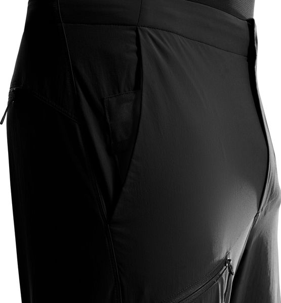 "Flexible cut and diamond gusset ensure excellent freedom of movement. The woven four-weave-stretch-nylon fabric and flat, easy adjustment at the waist ensure an excellent fit and best comfort. Multiple pockets provide ample space for your essentials to keep them within reach while you're on the move."