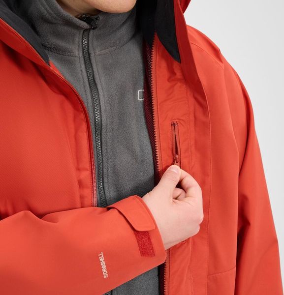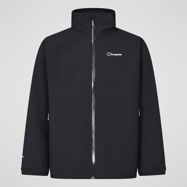 "This jacket combines functionality and style with its straightforward silhouette that offers a modern look. The water-repellent full-Zip-front zip not only provides additional rain protection, but also allows you to combine it with any compatible Berghaus midlayer for extra warmth. The two zippered pockets and an inner pocket with zipper closure offer secure and easily accessible storage space for small valuables and important items."