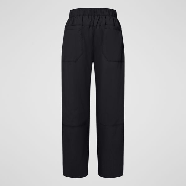 - "Semi-elastic waistband for more comfort. Two open front pockets and two patch back pockets provide secure storage space for your essentials. Hem adjustment for added versatility and protection from draughts."