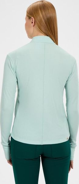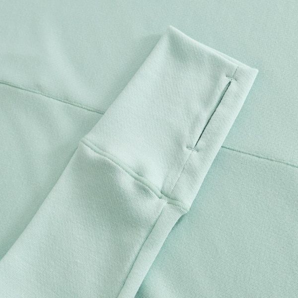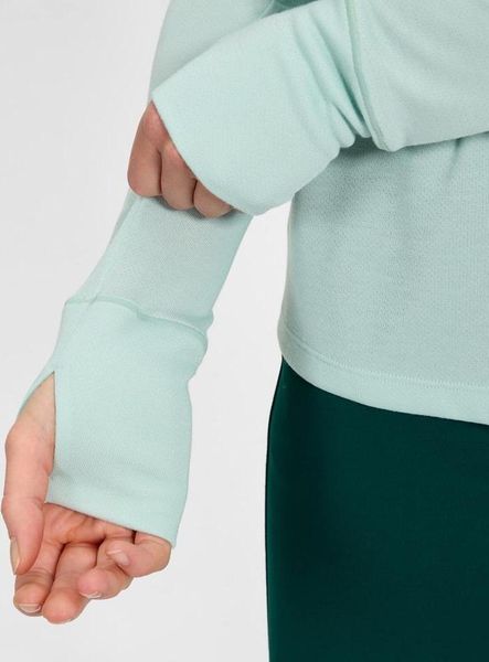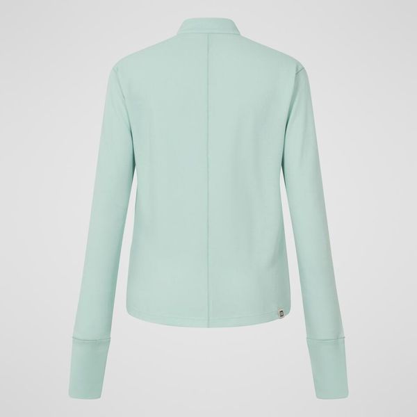 "With a large half zip, you can adjust the ventilation individually, while thumb loops ensure that the sleeves stay securely in place when changing layers. This keeps your hands pleasantly warm, even when temperatures drop. The Merrow seam along the center back gives the design a subtle elegance and increases comfort, so you can feel good all round. This top is not only a functional base layer, but also a stylish companion for any adventure."