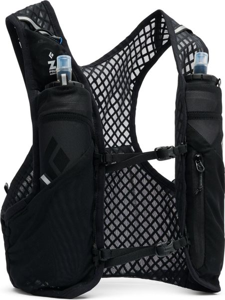"The Distance 2 Hydration Vest from Black Diamond is the perfect companion for all running adventures. This lightweight and sleek vest is specifically designed for runners who value comfort and functionality. Made from high quality nylon, it features soft edging and a stretchmesh construction that makes it comfortable to wear, even on longer runs. The innovative Diamond Spacer Mesh on the back is extremely breathable and prevents uncomfortable chafing so that you can concentrate fully on your training."