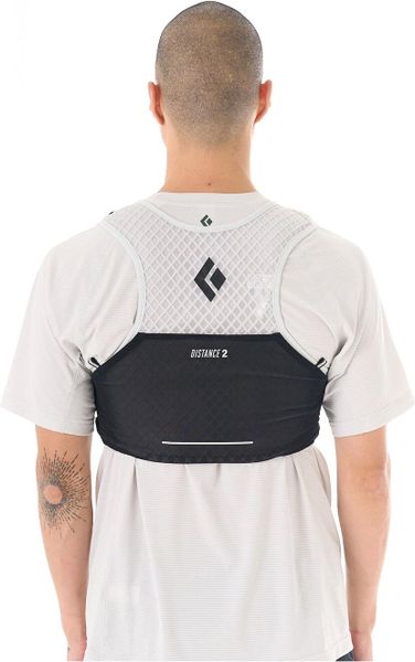 - "The Distance 2L Vest is simple, sleek and designed for running adventures. The Distance 2L has soft edging and a stretch mesh construction that feels soft against the skin. The custom Diamond Spacer Mesh back panel is extremely breathable and made from a soft material that prevents chafing. Well thought-out pockets and an innovative storage system for soft flasks provide security for the most important things on the go and improve efficiency when refilling water. The vest has two front compartments for two 500 ml soft flasks, which are included. Larger items can be stowed in the rear compartment, while the front compartment with zipper and integrated key clip is designed for smaller items."