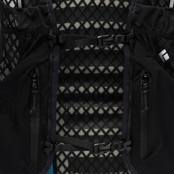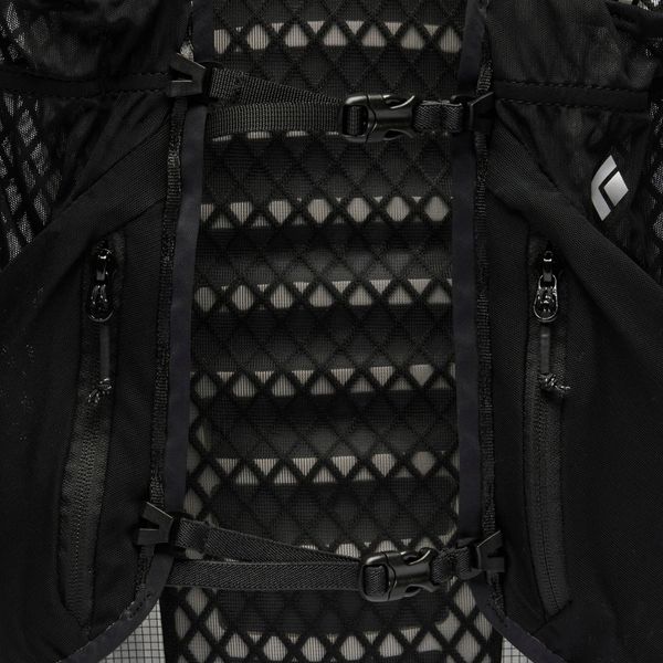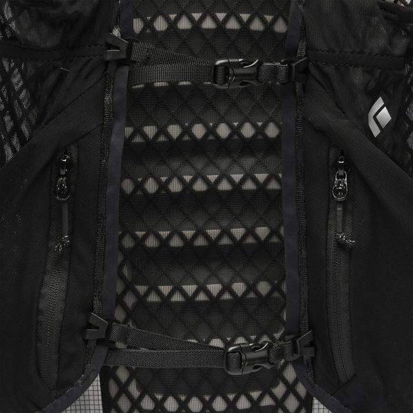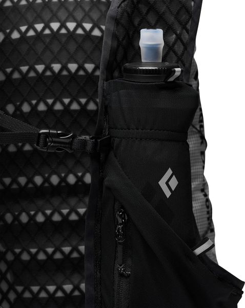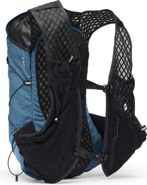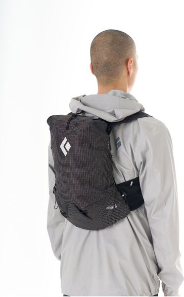 "The Distance 8 backpack from Black Diamond is the ideal companion for anyone planning an active day in the mountains. Specially designed for running, this backpack offers outstanding freedom of movement thanks to its unique carrying system. The mesh wing construction extends from the back along the sides for a secure, chafe-free fit. Whether you're on a fast trail run or a relaxed hike, the Distance 8L sits comfortably and is barely noticeable against the skin thanks to the soft and breathable Diamond Meshconstruction."