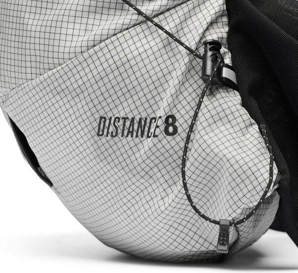 - "The Distance 8L is designed to carry everything you need for a day in the mountains. The unique carrying system offers outstanding freedom of movement and a secure, chafe-free fit with a mesh wing construction that extends from the back panel along the sides. The Distance 8L has a barely-there edge binding and a soft, breathable Diamond Mesh construction for next-to-skin comfort. With the Z-Pole storage compartment, you have your packs quickly to hand on the go, while the two side compression straps allow you to quickly adjust the volume of the backpack. The soft flask holders keep your water supplies close at hand, while additional front compartments offer secure storage space. The Distance 8L has an internal zippered compartment, side storage pockets made of stretch fabric and a zippered compartment on the shoulder strap."