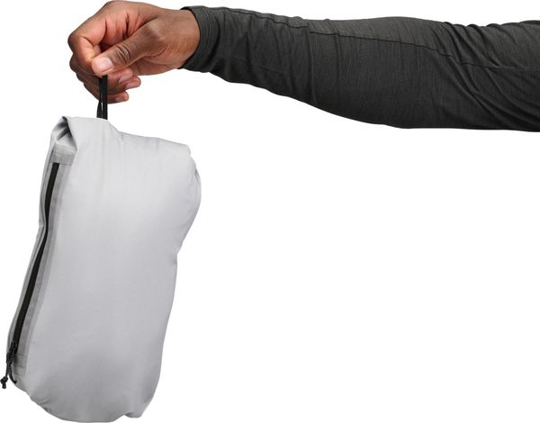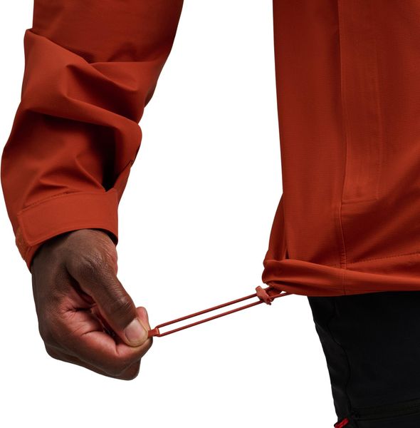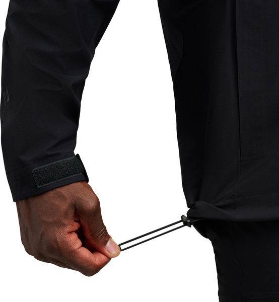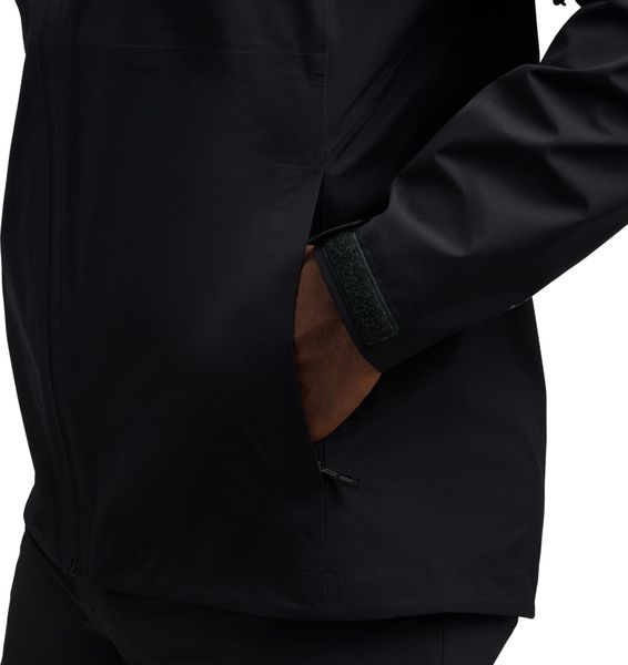 - "Welded seams, a waterproof zipper, adjustable cuffs and an adjustable hem keep moisture out. The slightly elongated back section provides additional protection, while zips under the arms ensure air circulation when things heat up. Two zippered pockets also provide space for your essentials on the go. This jacket can withstand extremely wet conditions while remaining packable, simple and minimalist."