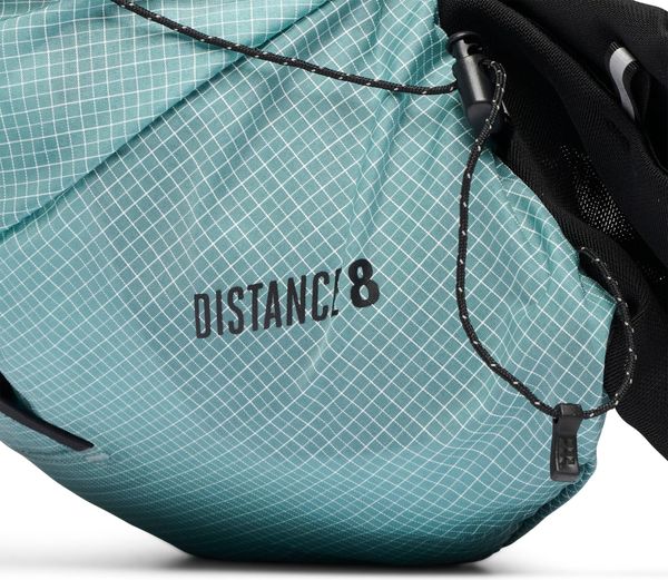 "With a capacity of 8 liters, the Distance 8L offers enough storage space for everything you need for a day in the mountains. The backpack is made from high-quality materials such as 87% recycled nylon, 7% PE and 6% recycled polyester, which are not only durable but also environmentally friendly. The soft, breathable Diamond Meshconstruction ensures a pleasant feel against the skin, while the barely perceptible edging provides additional comfort."