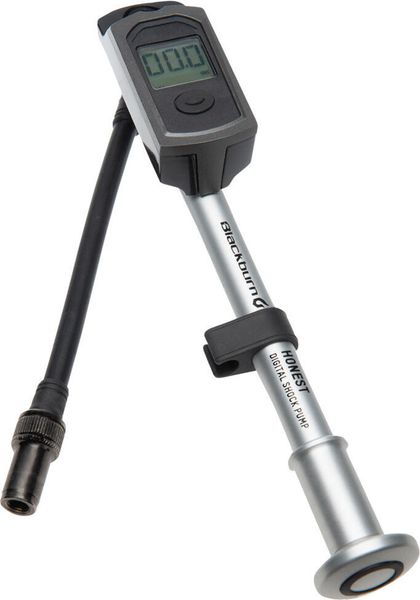 "The Honest Digital Shock Pump from Blackburn is the ideal companion for anyone who values precise air pressure control on their shocks and suspension forks. With its easy-to-read digital gauge, it enables precise monitoring and adjustment of the air pressure, which is essential for optimum performance and safety when riding. The innovative swivelpump head ensures that even valves that are difficult to access can be reached without any problemsu00f6nnennen. Thanks to the backlit display, the pressure indicator is clearly visible even in poor lighting conditions, which makes handling even easier."