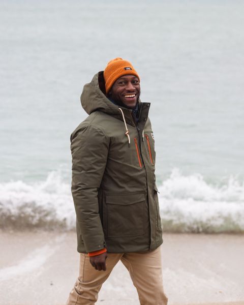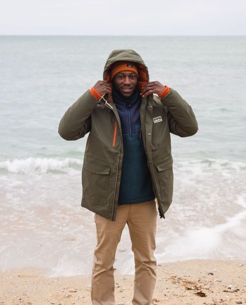 "The Arlo jacket features an innovative padded lining made from recycled polyester and synthetic down for lasting warmth. The front patch pockets, lined with soft sherpa, provide added comfort and functionality, while thick ribbed inner cuffs lock in warmth and prevent cold spots."