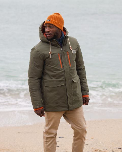 "High-quality parka made from recycled polyester for optimum weather protection and warmth in winter."