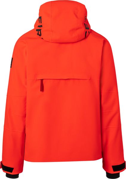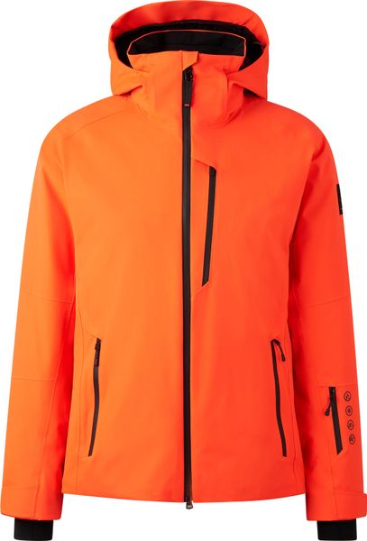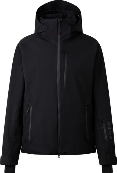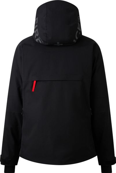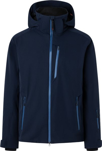 "With three zipped pockets at the front and a zipped ski pass pocket on the left sleeve, the jacket offers plenty of storage space for important items. The adjustable hem with Velcro fastener and the elasticated jersey cuffs ensure a perfect fit and prevent cold air from penetrating. Practical details such as the mesh-lined zipper slit on the sleeve side seam and the zipper pocket on the back add to the functionality."